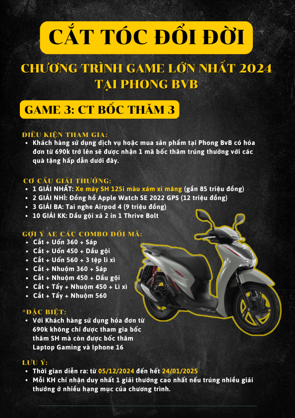 Đặc biệt, Không chỉ dừng lại ở bốc thăm SH 125i Xám Xi Măng, anh em còn được thêm 1 vé tham gia Bốc Thăm IPHONE 16 và 1 vé tham gia Bốc Thăm LAPTOP GAMING