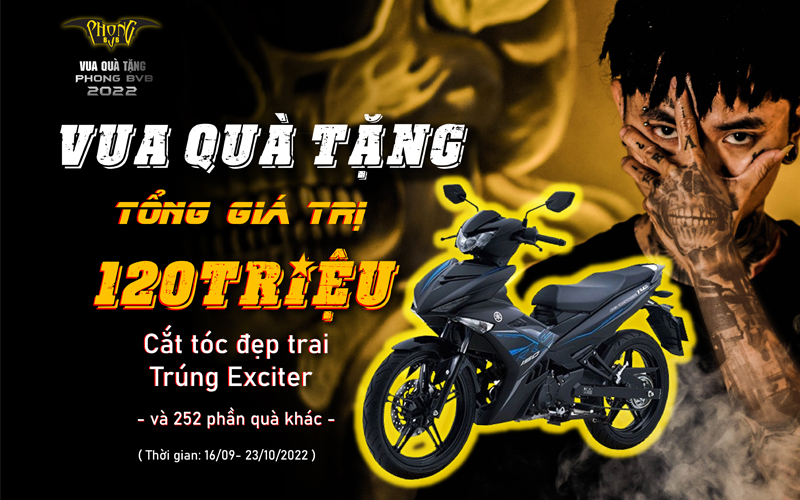 Khách hàng khi đến Phong BVB sử dụng dịch vụ hoá đơn từ 350k trở lên được tham gia chương trình bốc thăm trúng xe máy Exciter