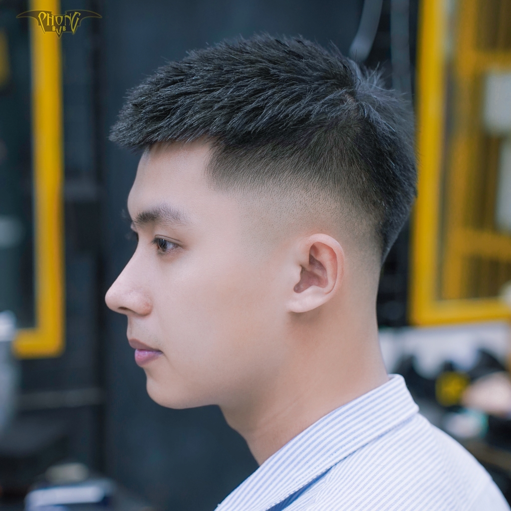 Short crop là phiên bản gọn gàng hơn với phần đỉnh ngắn (2-4cm), kết hợp fade cao hoặc trung. Đây là lựa chọn hoàn hảo cho những anh chàng bận rộn hoặc làm việc trong môi trường công sở. Kiểu tóc này không cần tốn nhiều thời gian tạo kiểu mà vẫn giữ được vẻ nam tính.