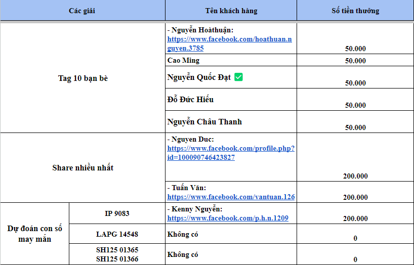 Danh Sách Khách Hàng Trúng Giải Thưởng của Chương Trình Vua Quà Tặng Phong BvB 2024 - Cắt Tóc Dổi Đời