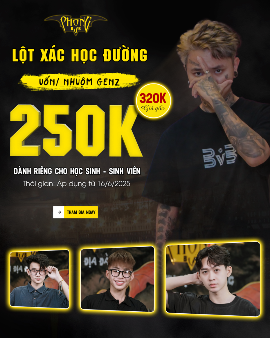 Còn ngại gì mà không “lên đời” ngay diện mạo? Đến Phong BvB trải nghiệm gói Uốn/Nhuộm 250k siêu hời cho học sinh – sinh viên, và FOMO cực mạnh khi không có tóc mới ngay mùa này. Mái tóc hợp gu sẽ giúp bạn tự tin, năng động hơn mỗi ngày. Số lượng có hạn – đừng để thiếu “trend” nhé! AE inbox fanpage chính thức của Phong BvB tại đây để biết thêm thông tin!