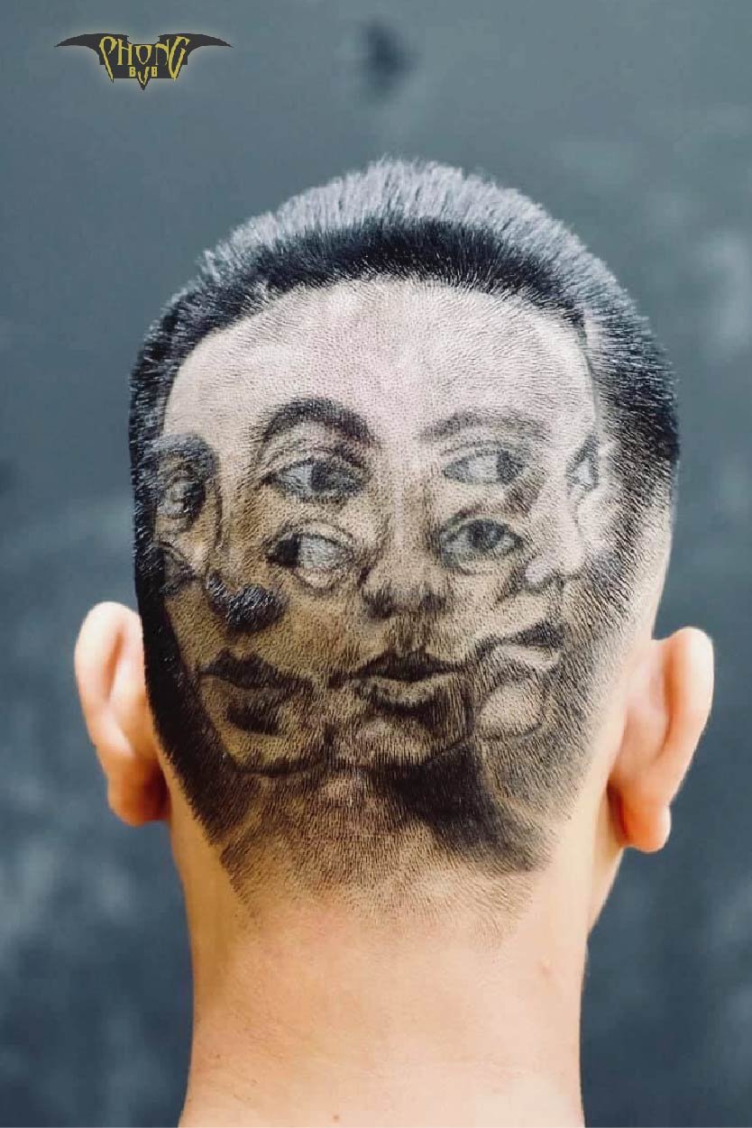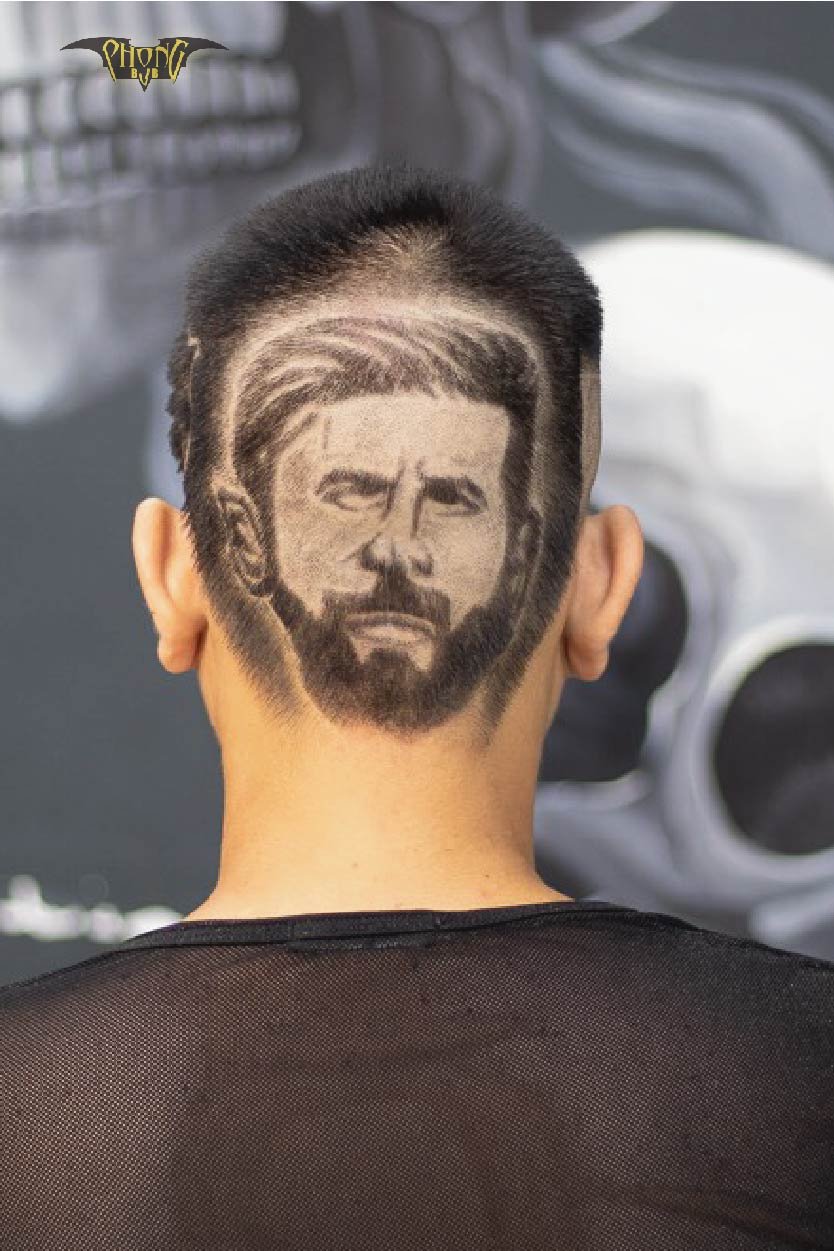 Đây là level siêu khó mà rất hiếm thợ barber có thể làm được. Nếu bạn gặp được người thợ giỏi, bạn sẽ có ngay một hình tattoo cực kỳ sống động và siêu chất. Với hình tattoo này bạn đi đến đâu cũng đều để lại ấn tượng mạnh với người khác. Chính vì độ chất đỉnh cao mà tattoo chân dung mang lại nên bạn chẳng cần cắt kiểu tóc gì cầu kỳ cũng đã đủ nổi bật rồi.