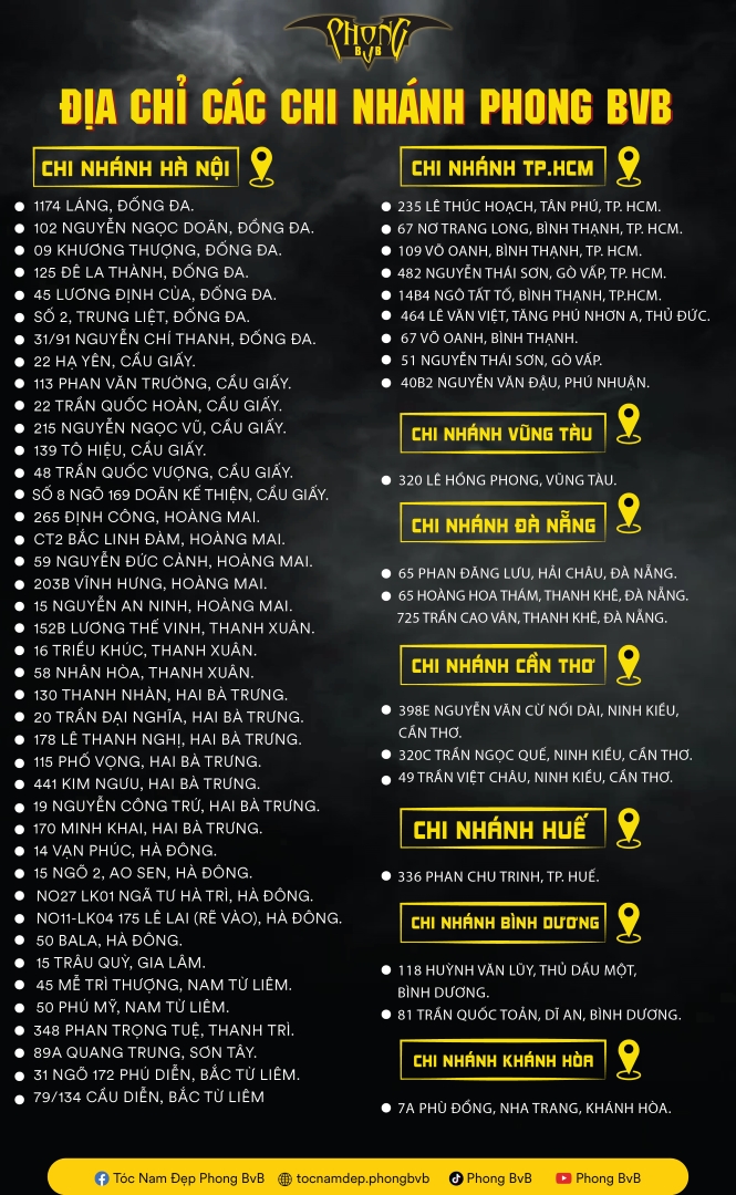 Ae xem địa chỉ các cơ sở của Phong BvB, xem cơ sở nào gần nhất để qua cho tiện nhé!
