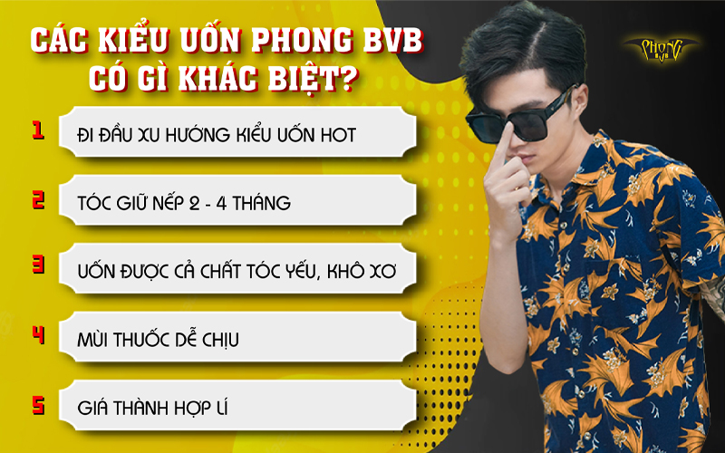 - Đi đầu xu hướng kiểu uốn hot. Phong BVB là nơi tiên phong những kiểu tóc hot. Điển hình phải kể đến như: Uốn Ziczac, uốn Premlock, uốn Ruffled.. Có thể khẳng định rằng Phong BVB tạo ra xu hướng tóc hot cho giới trẻ. Chính vì thế, đến với Phong BVB bạn luôn được sở hữu kiểu tóc uốn hot nhất và thời trang nhất.