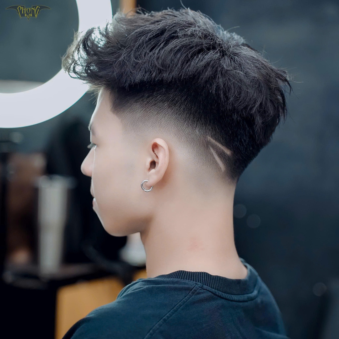 - Tóc hai bên và sau gáy cắt ngắn: Phần tóc hai bên và sau gáy được cắt ngắn gọn gàng, thường là fade hoặc cạo sát, giúp làm nổi bật phần tóc trên đỉnh và tạo sự tương phản mạnh mẽ.